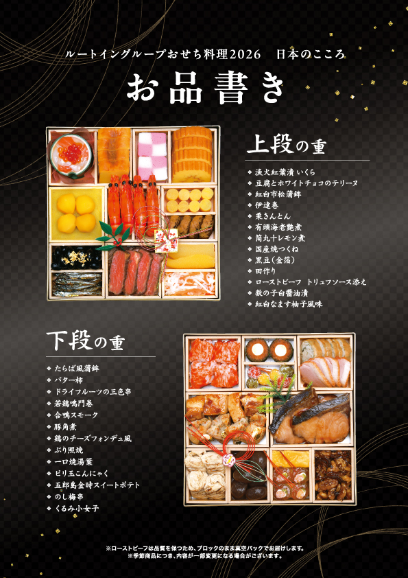 ルートイングループでは、本年もおせち料理「日本のこころ」をご用意いたしました。